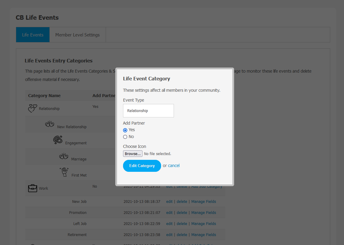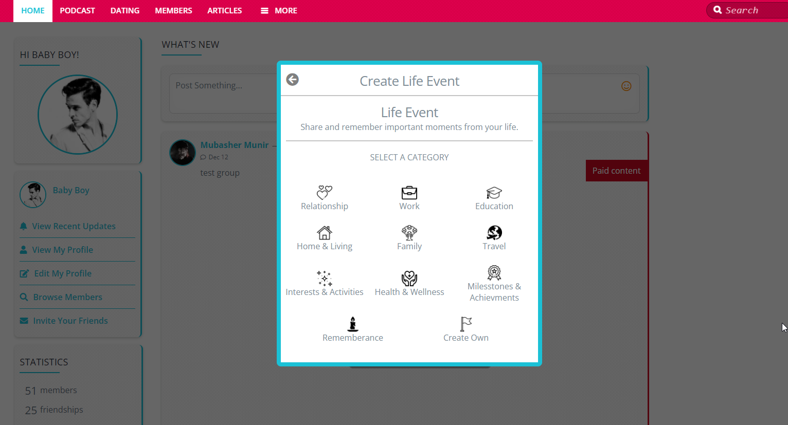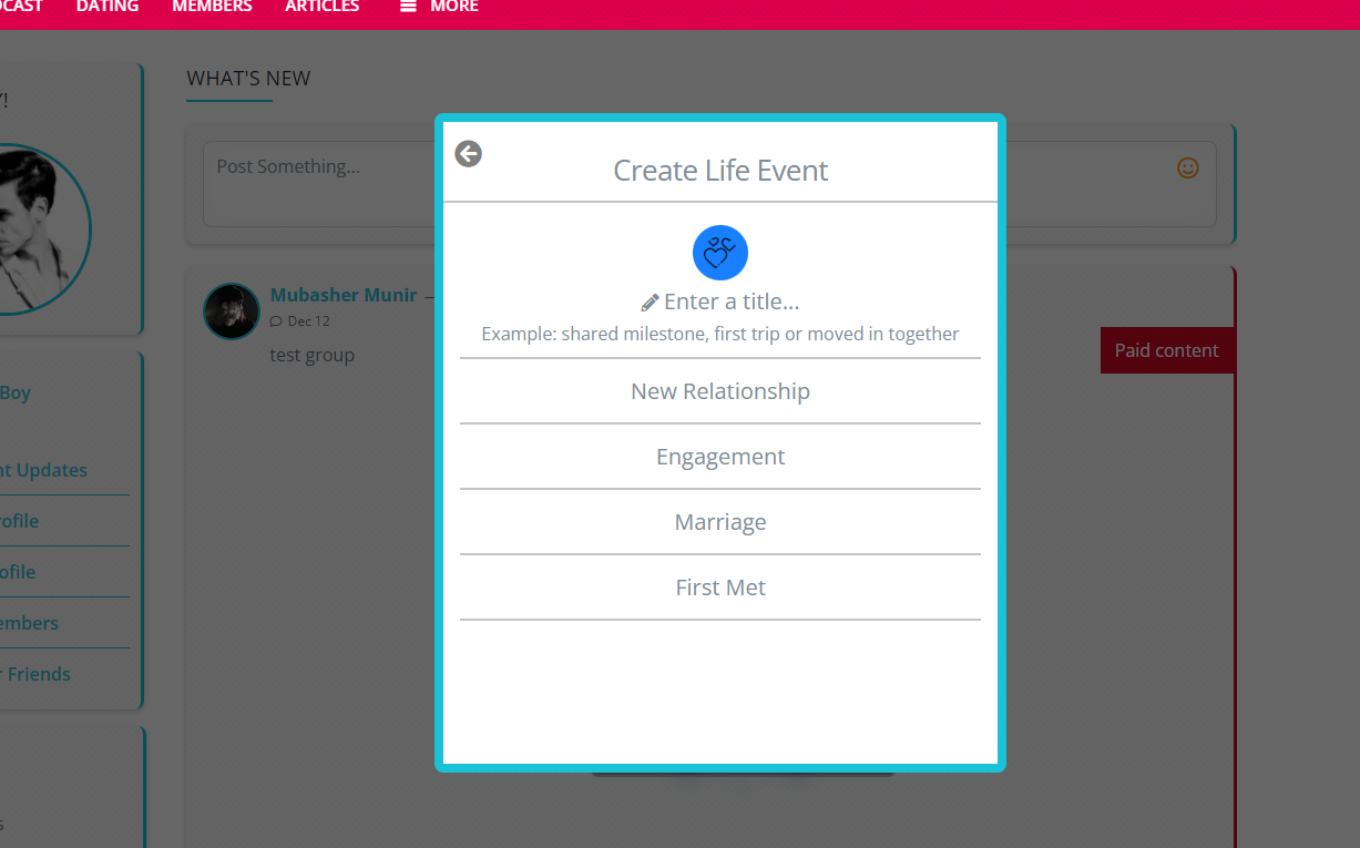 If you are looking to add life events on your member profiles, then this is the right choice, they can add life events such as in a relationship, got a job, and many more.