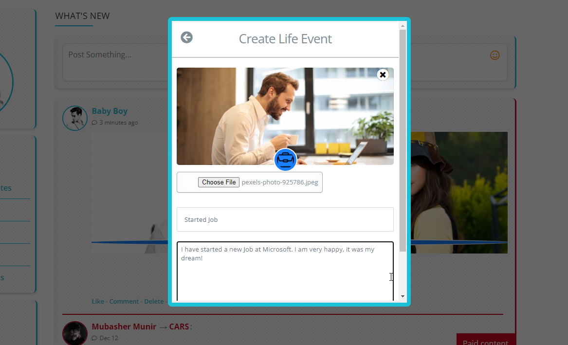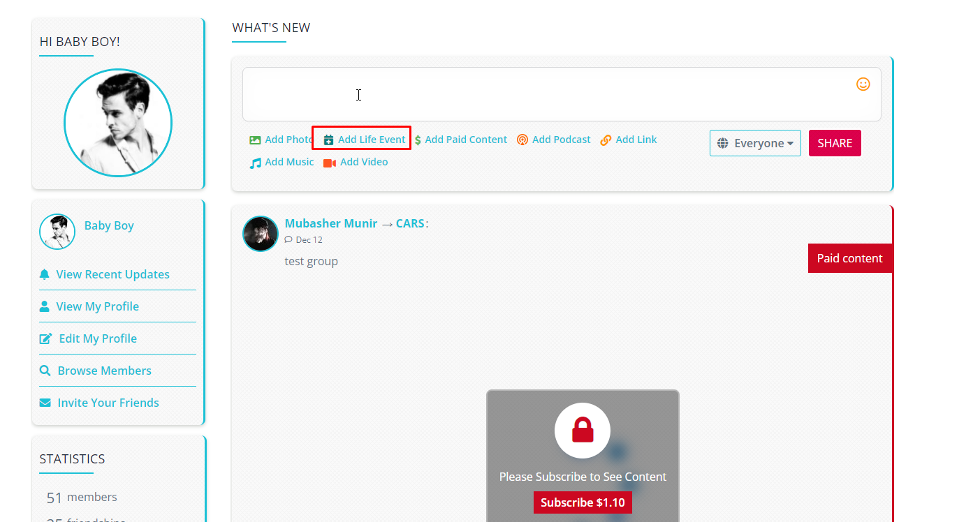 Enhance your member experience on your SocialEngine PHP website, allow them to add the life events to their profiles, and people will comment, like and share those special posts in their community.