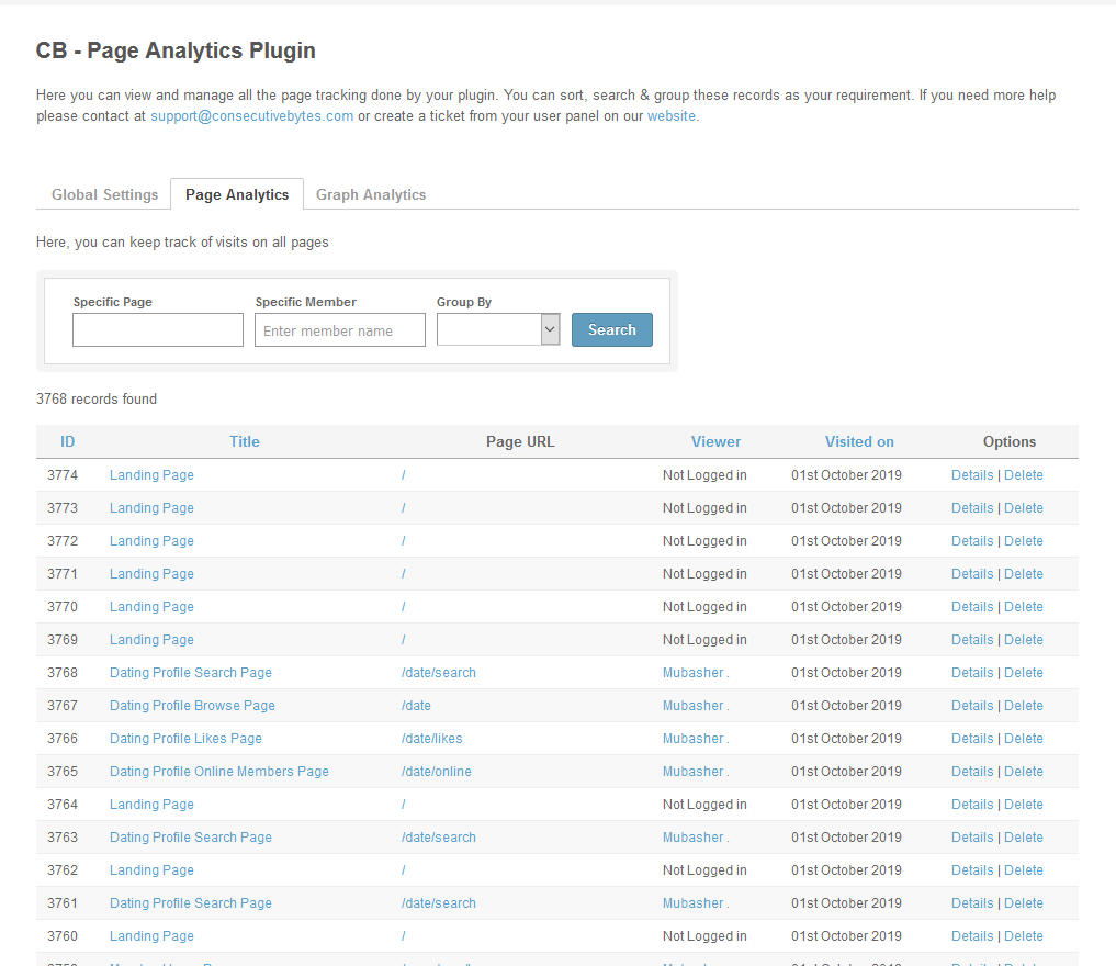 Having analytics of your site pages is great, you will know which of the pages are most visited logged in or logged out, which member is visiting which pages of the site. On these analytics you can decide which pages require more attention.