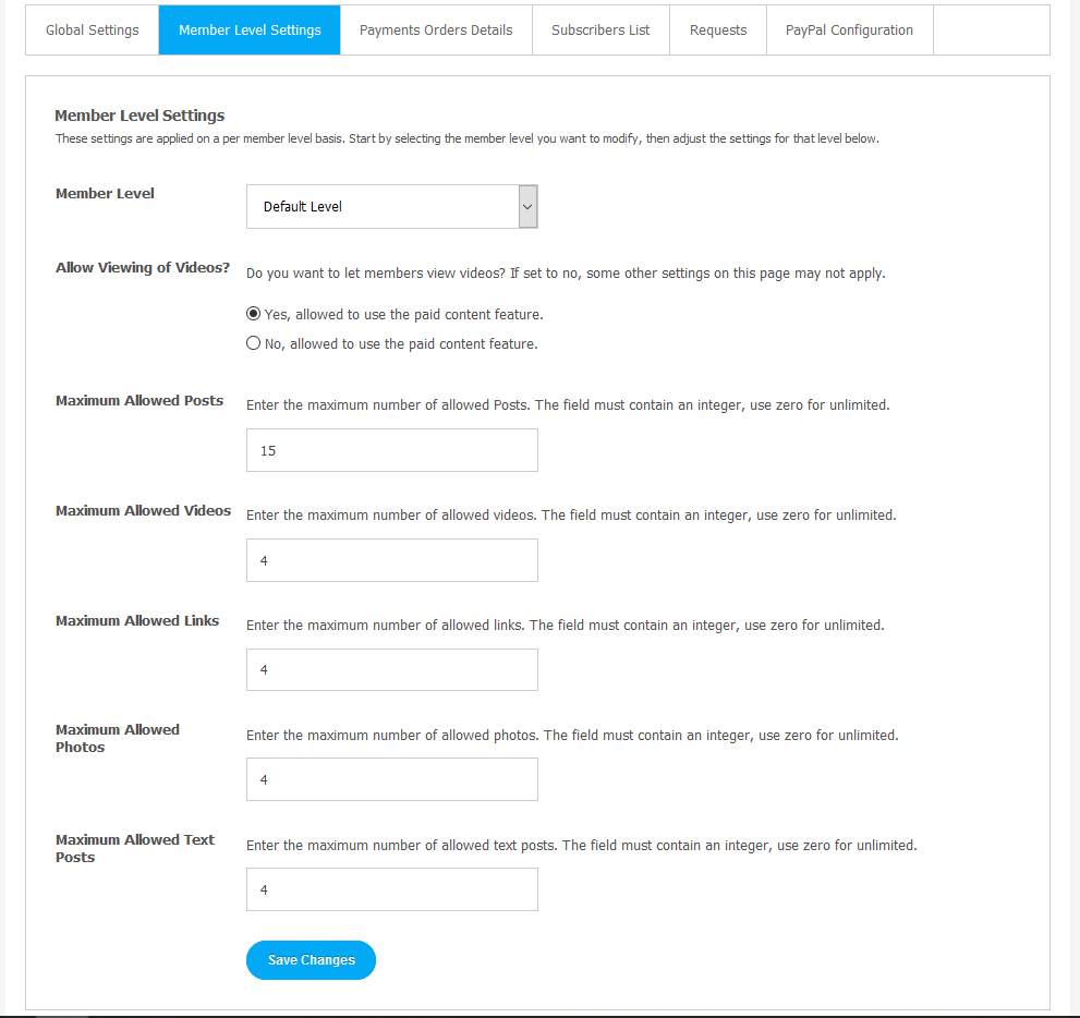 You can control if a member level should have access to post Paid Content or not? Or if you wish to control how many posts a member level can post, its best feature, you can control how many posts they can post in each category, its better if you are running monthly packages for website so a paid member can have more posts than a free member.