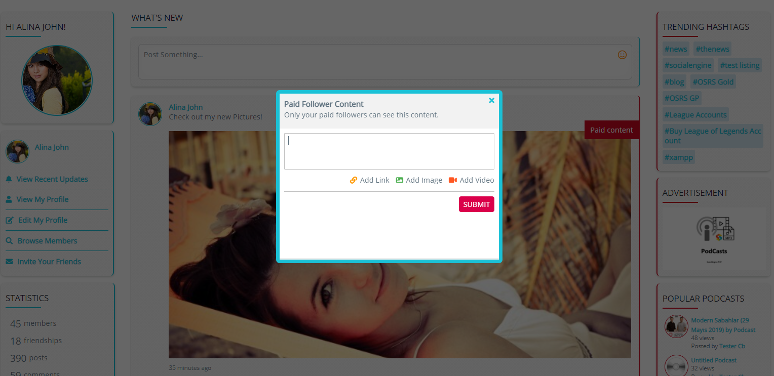 Start earning with your members, allow them to charge their followers on monthly, weekly or one time basis for sharing their premium content. Premium followers can enjoy their special posts which they only intend to share to their members.