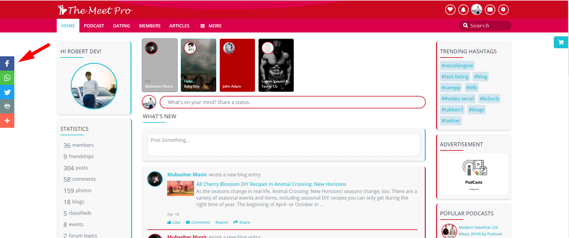 Sharing the content on Social Media necessary now a day, you can share your site pages to social networks, it will help your users to share the pages from the social engine site to their social media and will also help to get more users on site.