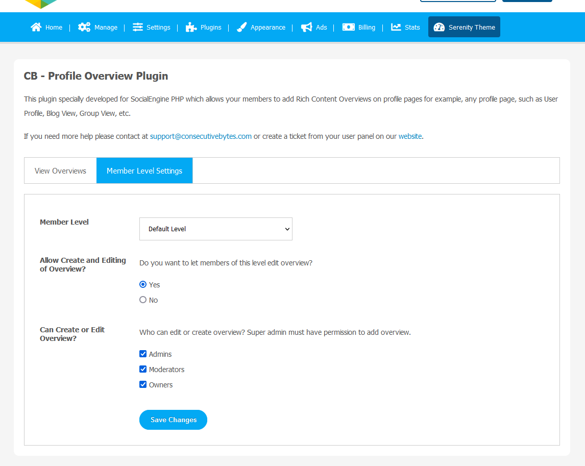 You can control if a member level can themselves create or edit the overview, or only admin can do it.
